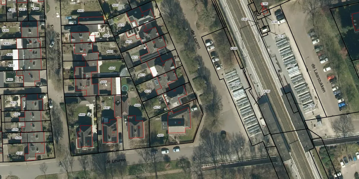 de Leuren 19 is gelegen op kadastraal perceel HZE00A4675. Deze kadastrale aanduiding is uniek en wordt gebruikt door het Kadaster om eigendomsrechten en andere zakelijke rechten vast te leggen. Het perceel maakt onderdeel uit van de kadastrale gemeente Heeze.