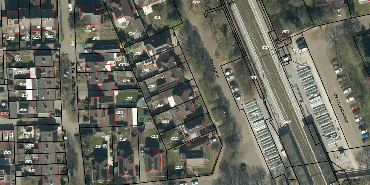 de Leuren 23 is gelegen op kadastraal perceel HZE00A4673. Deze kadastrale aanduiding is uniek en wordt gebruikt door het Kadaster om eigendomsrechten en andere zakelijke rechten vast te leggen. Het perceel maakt onderdeel uit van de kadastrale gemeente Heeze.