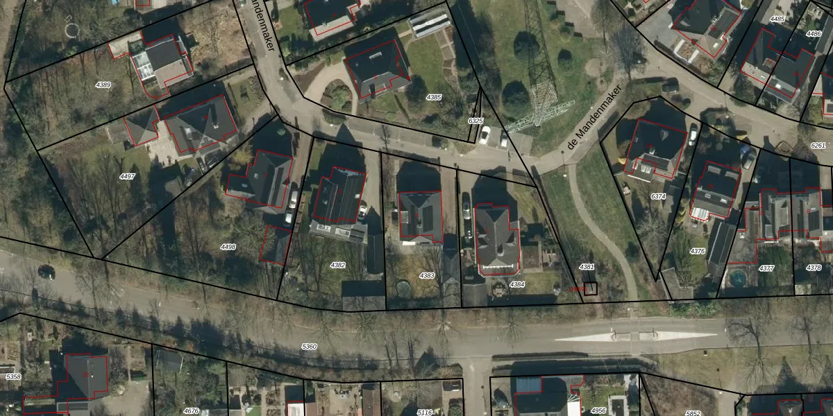 Het perceel waarop de Mandenmaker 3 staat heeft een oppervlakte van 643 m². Dit is een groot perceel. De perceeloppervlakte wordt geregistreerd door het Kadaster. Gedetailleerde informatie over de maten van dit perceel kunt u vinden in het rapport Kadastrale kaart met maatvoering van de Mandenmaker 3.