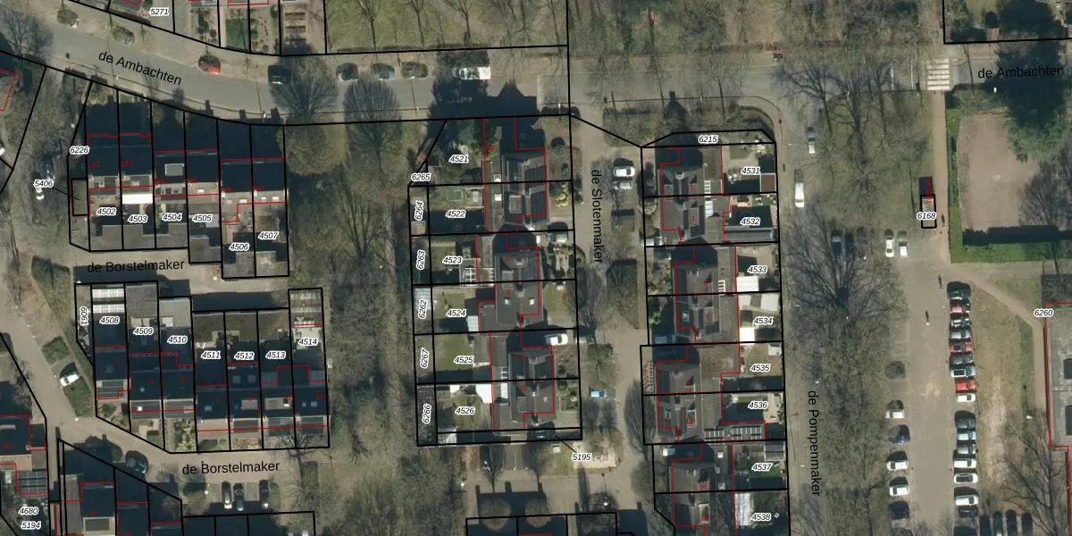 Het perceel waarop de Slotenmaker 4 staat heeft een oppervlakte van 249 m². Dit is een middelgroot perceel. De perceeloppervlakte wordt geregistreerd door het Kadaster. Gedetailleerde informatie over de maten van dit perceel kunt u vinden in het rapport Kadastrale kaart met maatvoering van de Slotenmaker 4.