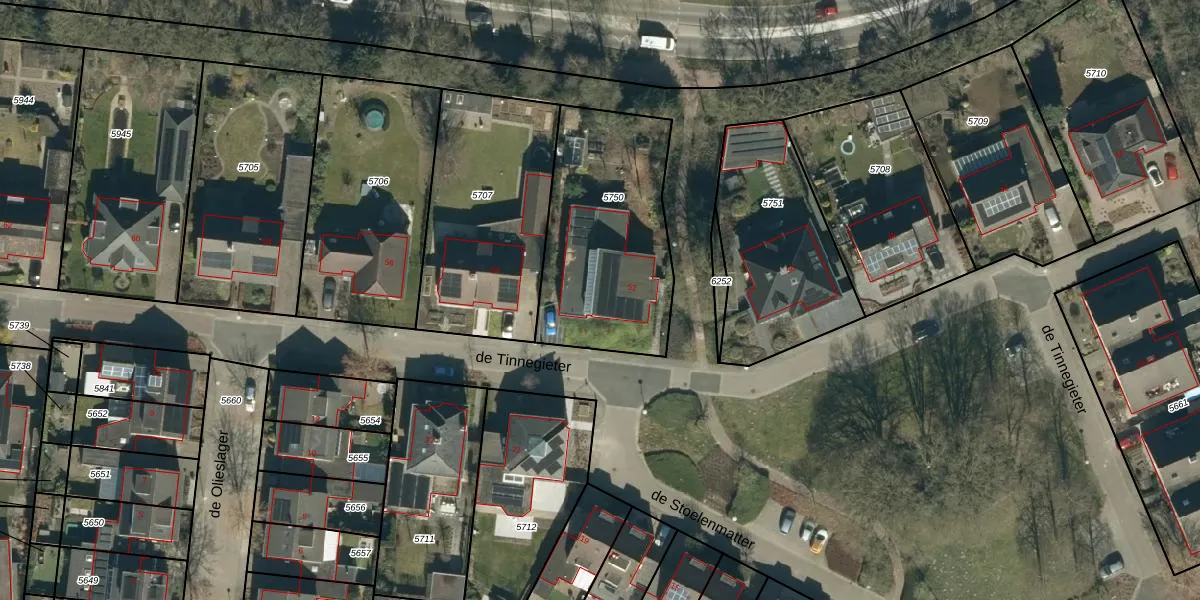 Het perceel waarop de Tinnegieter 52 staat heeft een oppervlakte van 803 m². Dit is een groot perceel. De perceeloppervlakte wordt geregistreerd door het Kadaster. Gedetailleerde informatie over de maten van dit perceel kunt u vinden in het rapport Kadastrale kaart met maatvoering van de Tinnegieter 52.