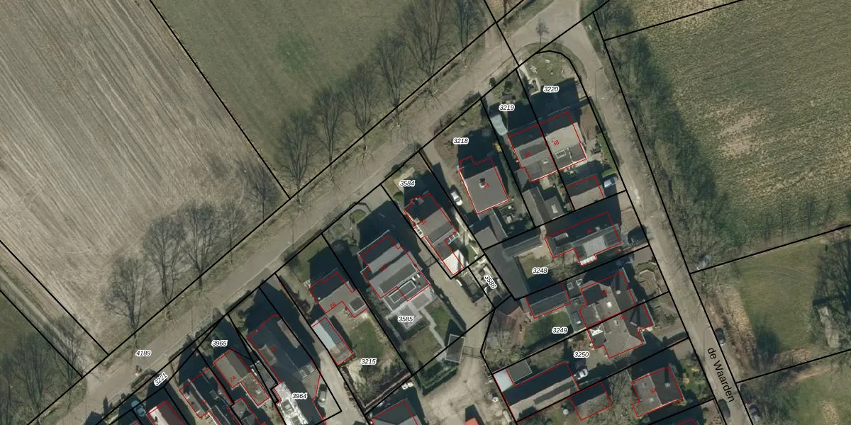 Het perceel waarop de Waarden 32 staat heeft een oppervlakte van 308 m². Dit is een groot perceel. De perceeloppervlakte wordt geregistreerd door het Kadaster. Gedetailleerde informatie over de maten van dit perceel kunt u vinden in het rapport Kadastrale kaart met maatvoering van de Waarden 32.