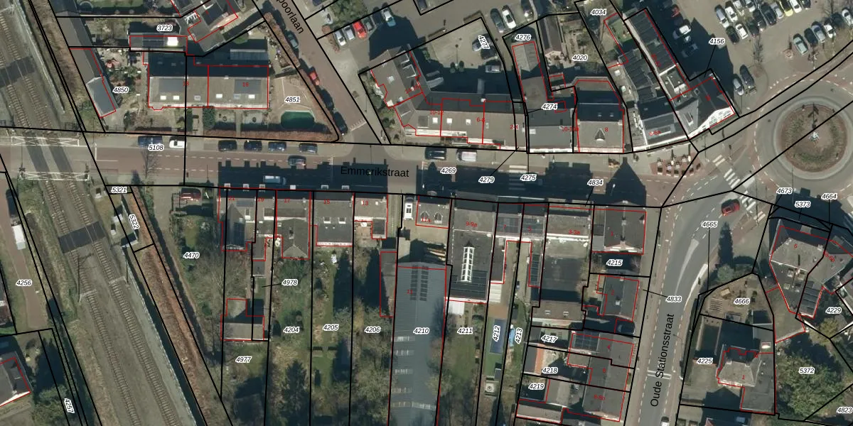 Het perceel waarop Emmerikstraat 11-a staat heeft een oppervlakte van 760 m². Dit is een groot perceel. De perceeloppervlakte wordt geregistreerd door het Kadaster. Gedetailleerde informatie over de maten van dit perceel kunt u vinden in het rapport Kadastrale kaart met maatvoering van Emmerikstraat 11-a.