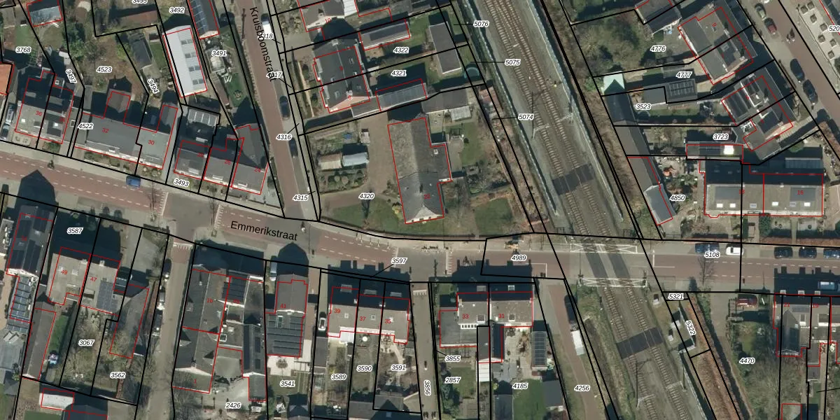 Emmerikstraat 22 is gelegen op kadastraal perceel HZE00C4320. Deze kadastrale aanduiding is uniek en wordt gebruikt door het Kadaster om eigendomsrechten en andere zakelijke rechten vast te leggen. Het perceel maakt onderdeel uit van de kadastrale gemeente Heeze.