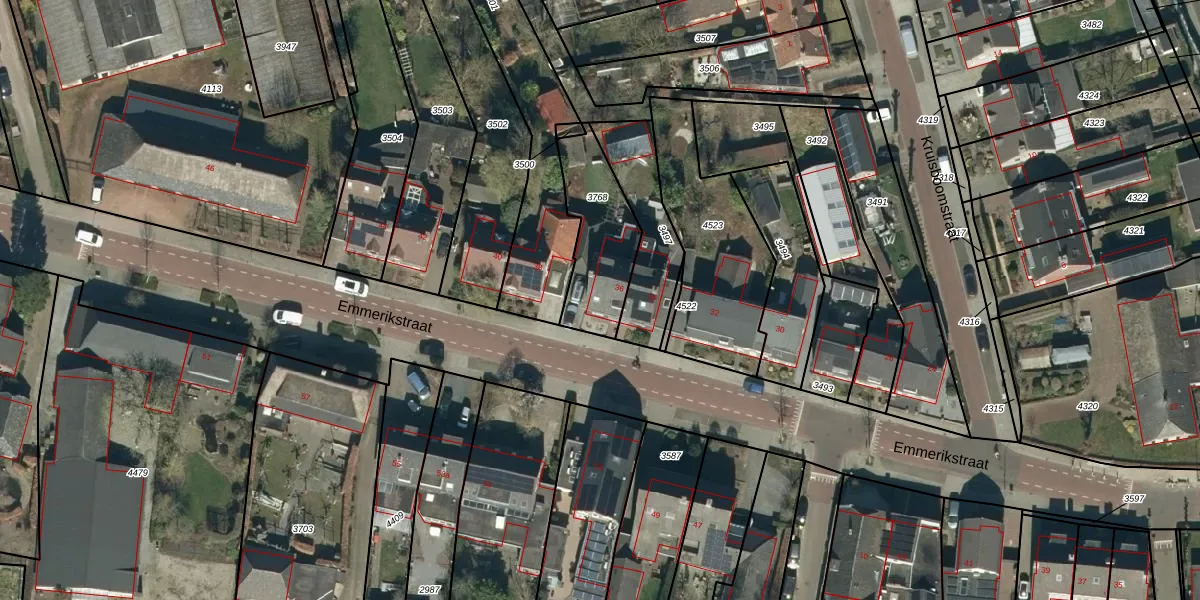 Het perceel waarop Emmerikstraat 36 staat heeft een oppervlakte van 306 m². Dit is een groot perceel. De perceeloppervlakte wordt geregistreerd door het Kadaster. Gedetailleerde informatie over de maten van dit perceel kunt u vinden in het rapport Kadastrale kaart met maatvoering van Emmerikstraat 36.