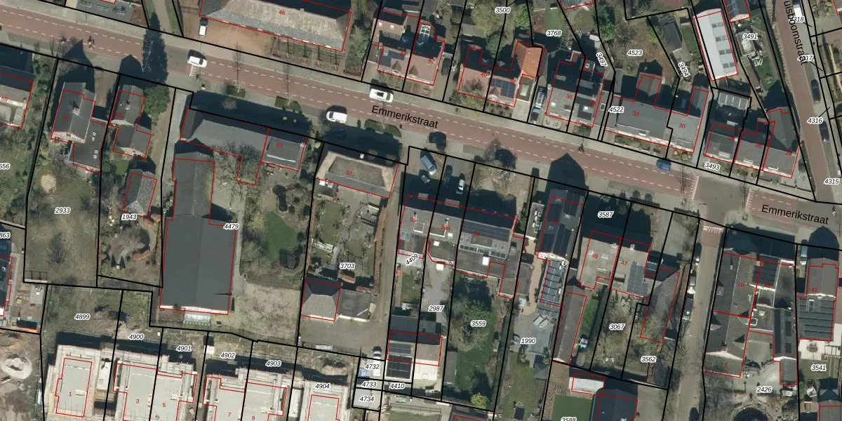 Gebruik de zoekbalk of klik op een perceel voor informatie over de adressen binnen dit perceel.