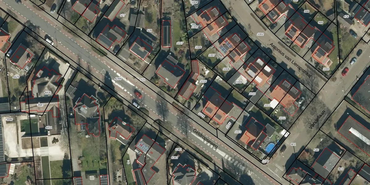 Geldropseweg 37 is gelegen op kadastraal perceel HZE00G1016. Deze kadastrale aanduiding is uniek en wordt gebruikt door het Kadaster om eigendomsrechten en andere zakelijke rechten vast te leggen. Het perceel maakt onderdeel uit van de kadastrale gemeente Heeze.