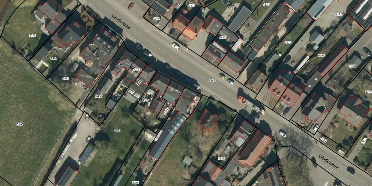 Het perceel waarop Ginderover 14 staat heeft een oppervlakte van 675 m². Dit is een groot perceel. De perceeloppervlakte wordt geregistreerd door het Kadaster. Gedetailleerde informatie over de maten van dit perceel kunt u vinden in het rapport Kadastrale kaart met maatvoering van Ginderover 14.