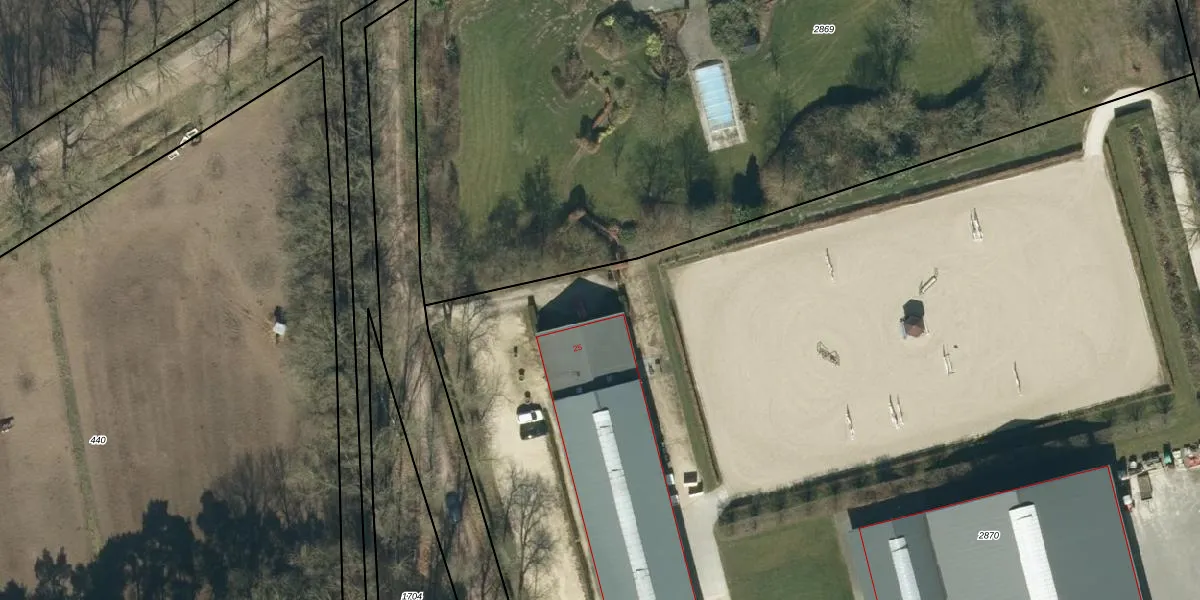 Het perceel waarop het adres ligt is HZE00-D-2870. De afkorting 'HZE00' staat voor kadastrale gemeente Heeze. De gemiddelde perceeloppervlakte in de kadastrale gemeente Heeze is 7248,79 m². Dit perceel is met zijn 1,8 ha dus groter dan gemiddeld. De grootste perceeloppervlakte in de kadastrale gemeente is 3,88 km². De kleinste oppervlakte bedraagt 0 m². Er zijn 7 adressen aanwezig op het perceel. In de Basisregistratie Kadaster (BRK) werden de grenzen van het perceel geregistreerd op 10-05-2005.