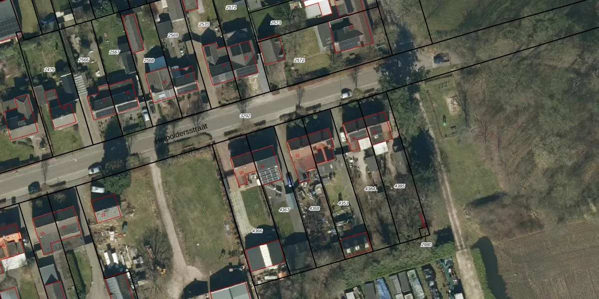 Het perceel waarop Heipoldersstraat 32 staat heeft een oppervlakte van 485 m². Dit is een groot perceel. De perceeloppervlakte wordt geregistreerd door het Kadaster. Gedetailleerde informatie over de maten van dit perceel kunt u vinden in het rapport Kadastrale kaart met maatvoering van Heipoldersstraat 32.