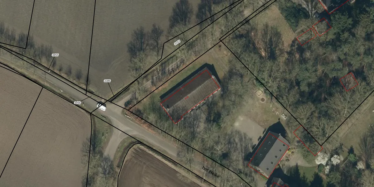 Het perceel waarop het Heike 31-a staat heeft een oppervlakte van 2,4 ha. Dit is een zeer groot perceel. De perceeloppervlakte wordt geregistreerd door het Kadaster. Gedetailleerde informatie over de maten van dit perceel kunt u vinden in het rapport Kadastrale kaart met maatvoering van het Heike 31-a.