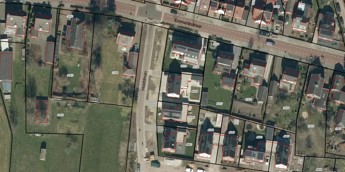 Het perceel waarop Hoofdman 5 staat heeft een oppervlakte van 429 m². Dit is een groot perceel. De perceeloppervlakte wordt geregistreerd door het Kadaster. Gedetailleerde informatie over de maten van dit perceel kunt u vinden in het rapport Kadastrale kaart met maatvoering van Hoofdman 5.