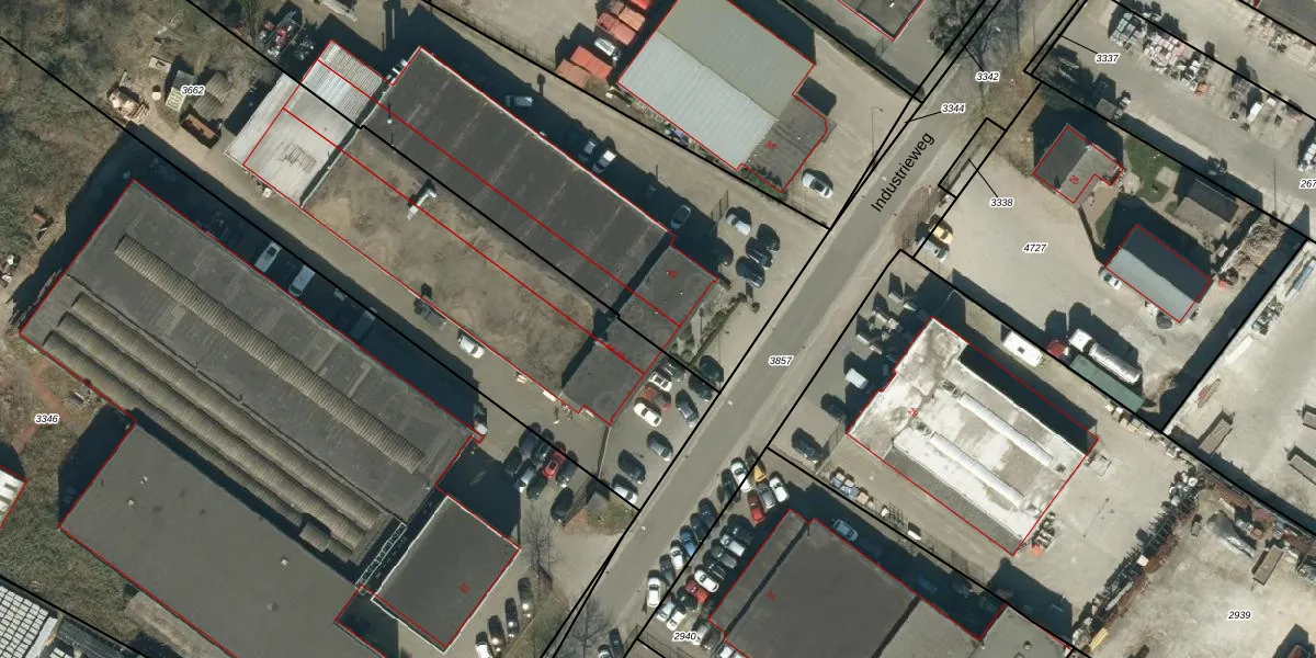 Het perceel waarop Industrieweg 44 staat heeft een oppervlakte van 2950 m². Dit is een zeer groot perceel. De perceeloppervlakte wordt geregistreerd door het Kadaster. Gedetailleerde informatie over de maten van dit perceel kunt u vinden in het rapport Kadastrale kaart met maatvoering van Industrieweg 44.