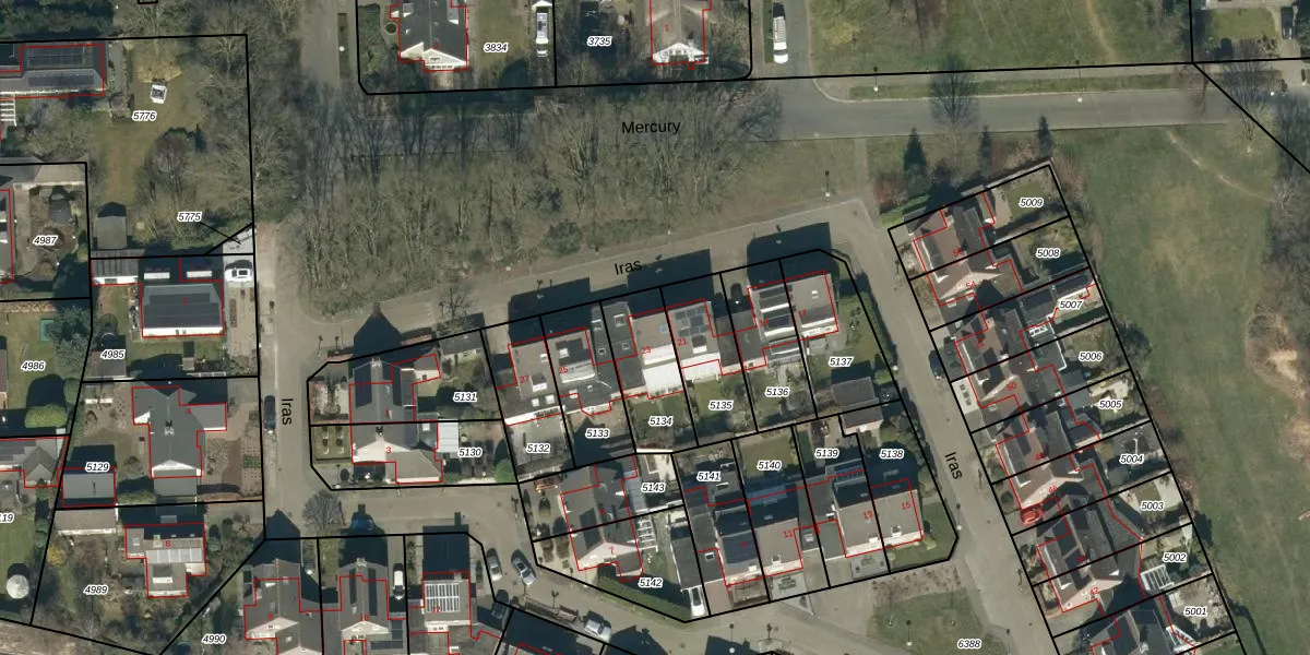Gebruik de zoekbalk of klik op een perceel voor informatie over de adressen binnen dit perceel.