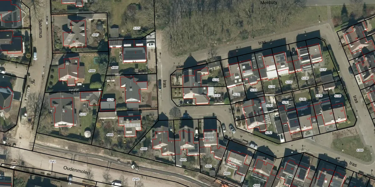 Het perceel waarop Iras 3 staat heeft een oppervlakte van 289 m². Dit is een middelgroot perceel. De perceeloppervlakte wordt geregistreerd door het Kadaster. Gedetailleerde informatie over de maten van dit perceel kunt u vinden in het rapport Kadastrale kaart met maatvoering van Iras 3.