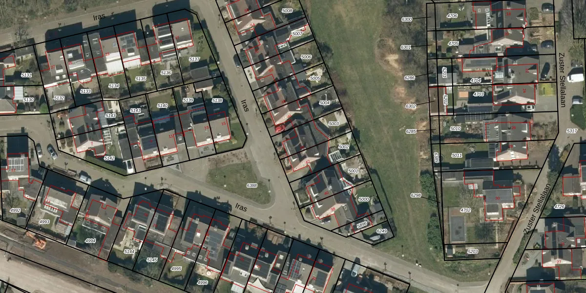 Het perceel waarop Iras 44 staat heeft een oppervlakte van 223 m². Dit is een middelgroot perceel. De perceeloppervlakte wordt geregistreerd door het Kadaster. Gedetailleerde informatie over de maten van dit perceel kunt u vinden in het rapport Kadastrale kaart met maatvoering van Iras 44.