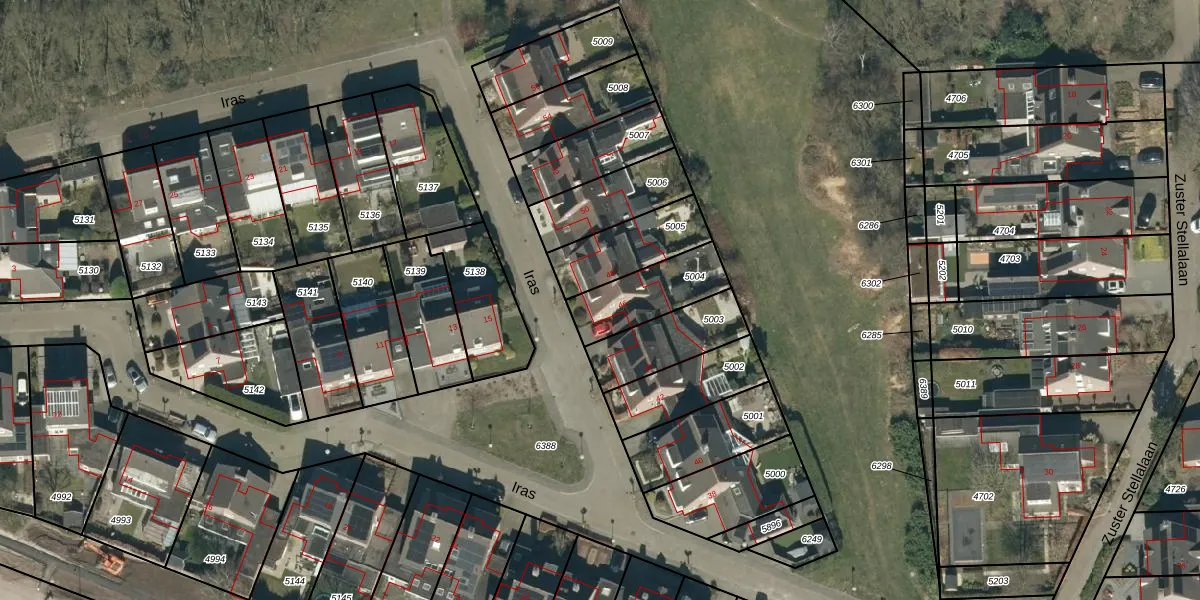 Het perceel waarop Iras 46 staat heeft een oppervlakte van 223 m². Dit is een middelgroot perceel. De perceeloppervlakte wordt geregistreerd door het Kadaster. Gedetailleerde informatie over de maten van dit perceel kunt u vinden in het rapport Kadastrale kaart met maatvoering van Iras 46.
