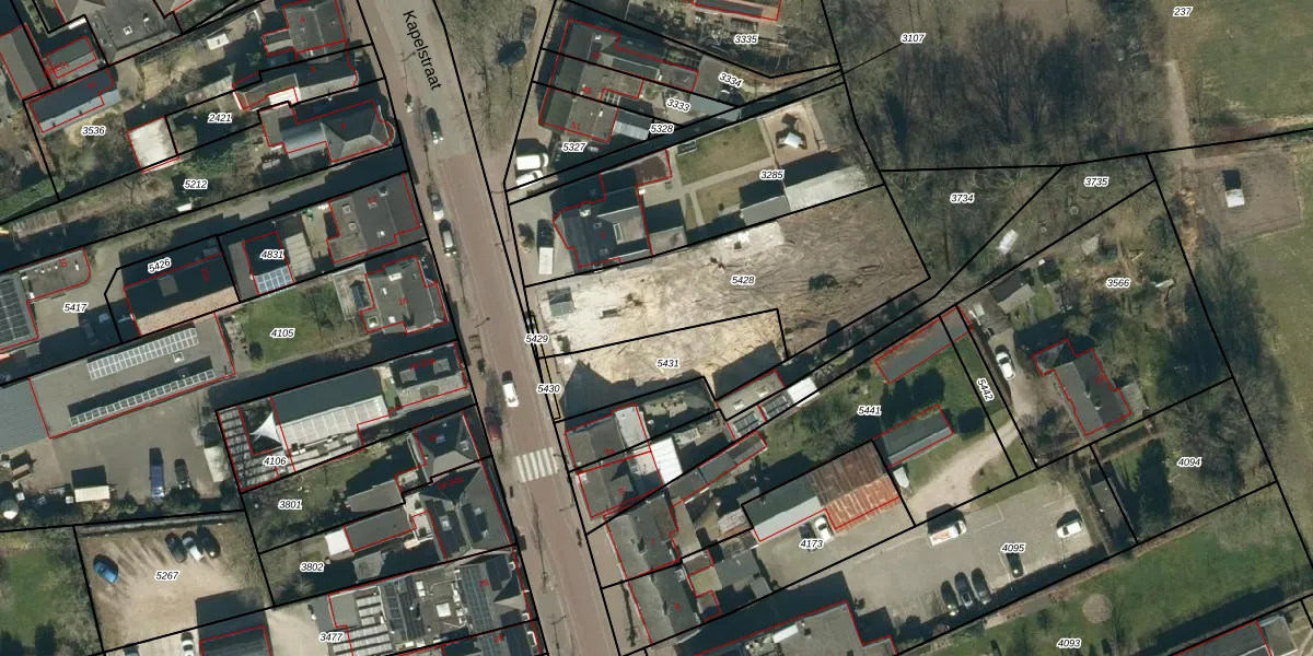 Het perceel waarop Kapelstraat 1-t staat heeft een oppervlakte van 820 m². Dit is een groot perceel. De perceeloppervlakte wordt geregistreerd door het Kadaster. Gedetailleerde informatie over de maten van dit perceel kunt u vinden in het rapport Kadastrale kaart met maatvoering van Kapelstraat 1-t.
