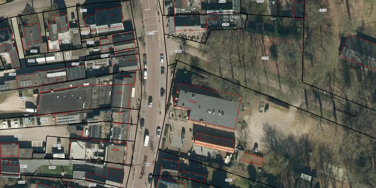 Het perceel waarop Kapelstraat 29-a staat heeft een oppervlakte van 2,6 ha. Dit is een zeer groot perceel. De perceeloppervlakte wordt geregistreerd door het Kadaster. Gedetailleerde informatie over de maten van dit perceel kunt u vinden in het rapport Kadastrale kaart met maatvoering van Kapelstraat 29-a.