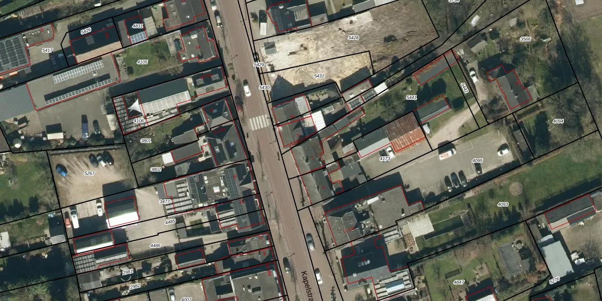 Het perceel waarop Kapelstraat 7 staat heeft een oppervlakte van 1015 m². Dit is een zeer groot perceel. De perceeloppervlakte wordt geregistreerd door het Kadaster. Gedetailleerde informatie over de maten van dit perceel kunt u vinden in het rapport Kadastrale kaart met maatvoering van Kapelstraat 7.