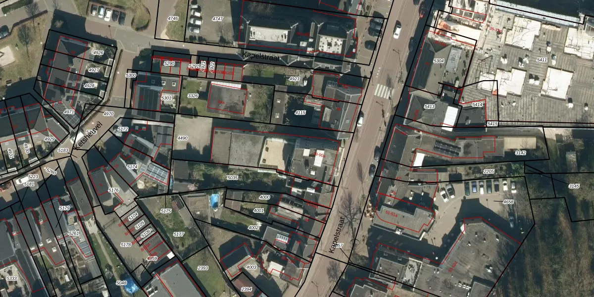 Het perceel waarop Kapelstraat 90 staat heeft een oppervlakte van 945 m². Dit is een groot perceel. De perceeloppervlakte wordt geregistreerd door het Kadaster. Gedetailleerde informatie over de maten van dit perceel kunt u vinden in het rapport Kadastrale kaart met maatvoering van Kapelstraat 90.