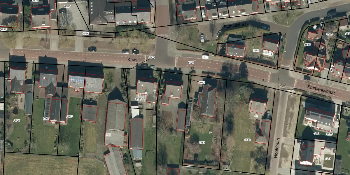 Het perceel waarop Kruis 1 staat heeft een oppervlakte van 3824 m². Dit is een zeer groot perceel. De perceeloppervlakte wordt geregistreerd door het Kadaster. Gedetailleerde informatie over de maten van dit perceel kunt u vinden in het rapport Kadastrale kaart met maatvoering van Kruis 1.