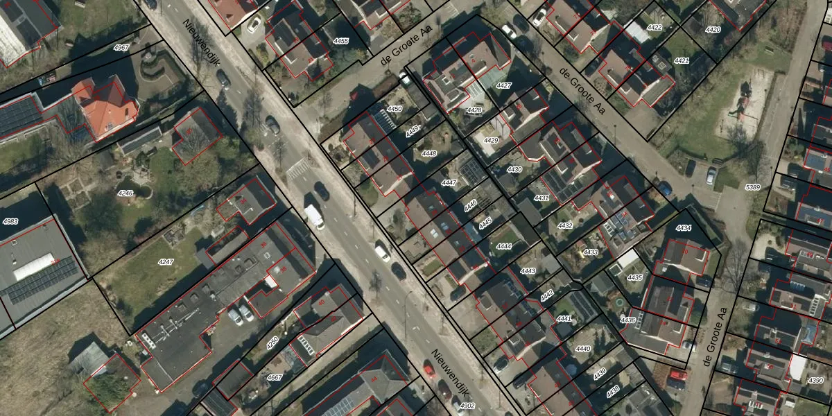 Het perceel waarop het adres ligt is HZE00-F-4447. De afkorting 'HZE00' staat voor kadastrale gemeente Heeze. Het perceel is kleiner dan gemiddeld in Heeze. Het perceel is 241 m² groot, terwijl het gemiddelde ligt op 7248,79 m². Het grootste perceel in de kadastrale gemeente is 3,88 km². Het kleinste perceel heeft een oppervlakte van 0 m². Dit is het enige adres dat aanwezig is op het perceel. De huidige grenzen van het perceel zijn digitaal in de Basisregistratie Kadaster (BRK) geregistreerd op 29-04-2005.
