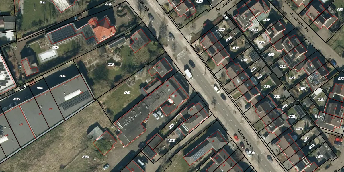 Het perceel waarop Nieuwendijk 36 staat heeft een oppervlakte van 4898 m². Dit is een zeer groot perceel. De perceeloppervlakte wordt geregistreerd door het Kadaster. Gedetailleerde informatie over de maten van dit perceel kunt u vinden in het rapport Kadastrale kaart met maatvoering van Nieuwendijk 36.