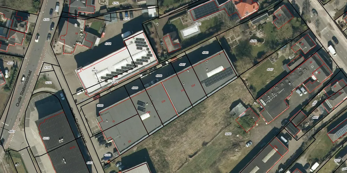Het perceel waarop Oude Stationsstraat 21-c staat heeft een oppervlakte van 606 m². Dit is een groot perceel. De perceeloppervlakte wordt geregistreerd door het Kadaster. Gedetailleerde informatie over de maten van dit perceel kunt u vinden in het rapport Kadastrale kaart met maatvoering van Oude Stationsstraat 21-c.