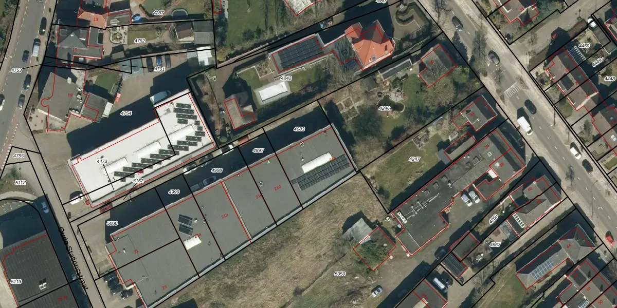 Het perceel waarop Oude Stationsstraat 21-e staat heeft een oppervlakte van 581 m². Dit is een groot perceel. De perceeloppervlakte wordt geregistreerd door het Kadaster. Gedetailleerde informatie over de maten van dit perceel kunt u vinden in het rapport Kadastrale kaart met maatvoering van Oude Stationsstraat 21-e.