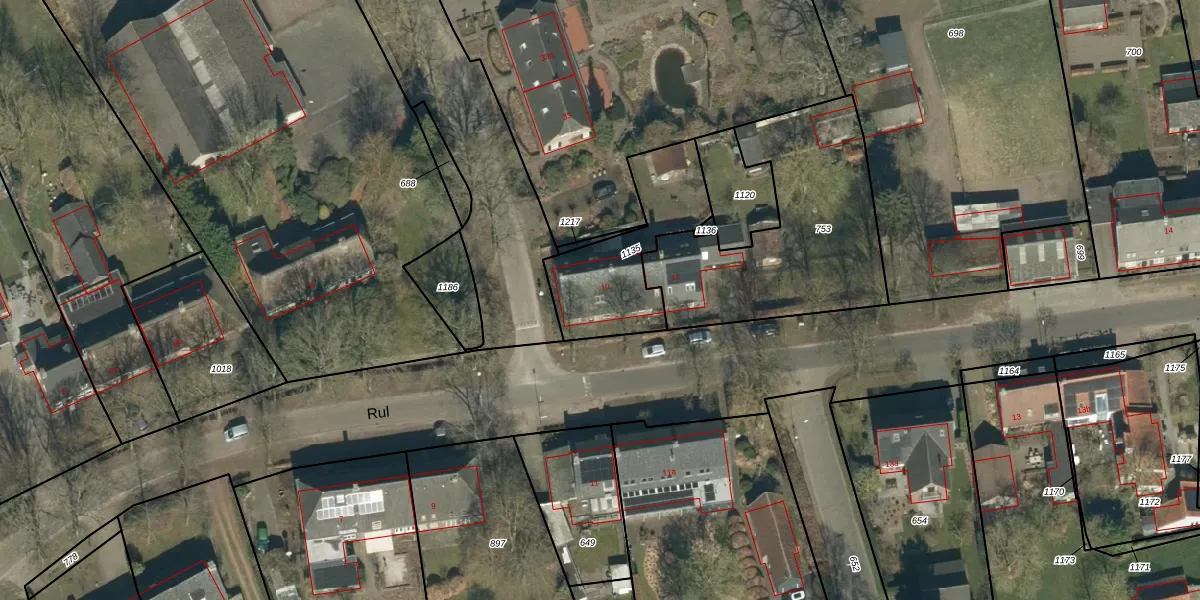 Het perceel waarop Rul 10 staat heeft een oppervlakte van 439 m². Dit is een groot perceel. De perceeloppervlakte wordt geregistreerd door het Kadaster. Gedetailleerde informatie over de maten van dit perceel kunt u vinden in het rapport Kadastrale kaart met maatvoering van Rul 10.