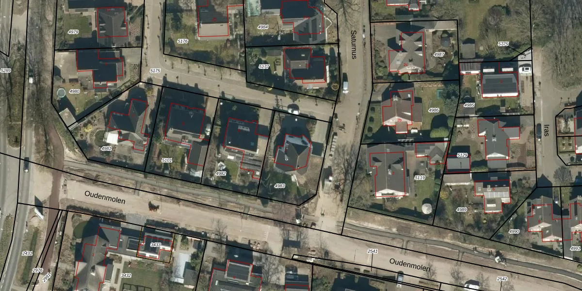 Het perceel waarop Saturnus 1 staat heeft een oppervlakte van 588 m². Dit is een groot perceel. De perceeloppervlakte wordt geregistreerd door het Kadaster. Gedetailleerde informatie over de maten van dit perceel kunt u vinden in het rapport Kadastrale kaart met maatvoering van Saturnus 1.