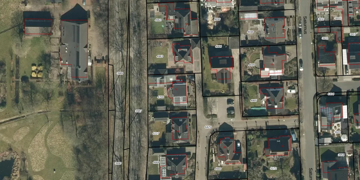 Het perceel waarop Saturnus 51 staat heeft een oppervlakte van 531 m². Dit is een groot perceel. De perceeloppervlakte wordt geregistreerd door het Kadaster. Gedetailleerde informatie over de maten van dit perceel kunt u vinden in het rapport Kadastrale kaart met maatvoering van Saturnus 51.