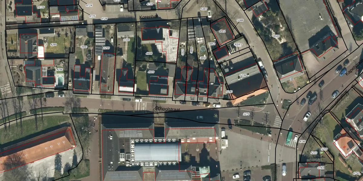 Het perceel waarop Schoolstraat 10 staat heeft een oppervlakte van 245 m². Dit is een middelgroot perceel. De perceeloppervlakte wordt geregistreerd door het Kadaster. Gedetailleerde informatie over de maten van dit perceel kunt u vinden in het rapport Kadastrale kaart met maatvoering van Schoolstraat 10.