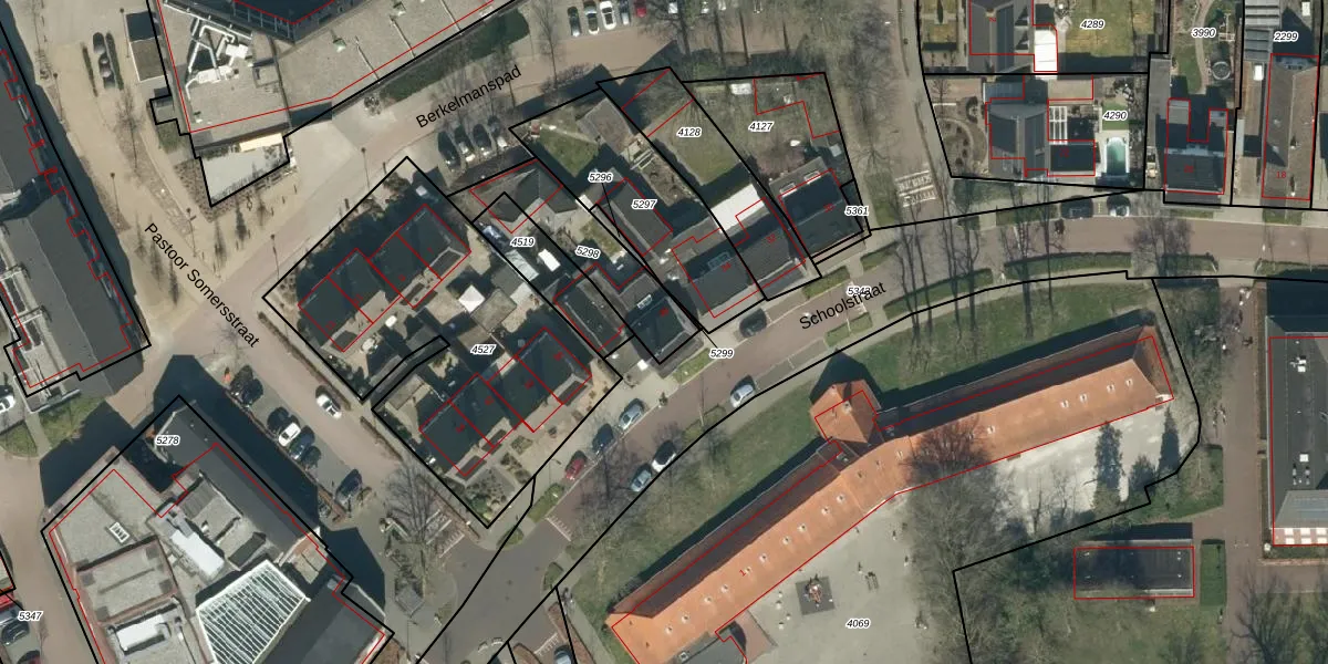Het perceel waarop Schoolstraat 36 staat heeft een oppervlakte van 303 m². Dit is een groot perceel. De perceeloppervlakte wordt geregistreerd door het Kadaster. Gedetailleerde informatie over de maten van dit perceel kunt u vinden in het rapport Kadastrale kaart met maatvoering van Schoolstraat 36.