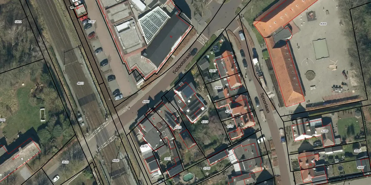 Het perceel waarop Schoolstraat 5 staat heeft een oppervlakte van 868 m². Dit is een groot perceel. De perceeloppervlakte wordt geregistreerd door het Kadaster. Gedetailleerde informatie over de maten van dit perceel kunt u vinden in het rapport Kadastrale kaart met maatvoering van Schoolstraat 5.