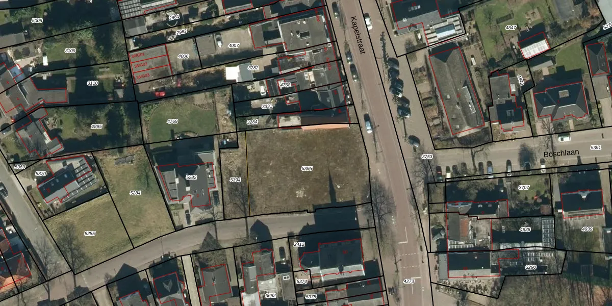Het perceel waarop het adres ligt is HZE00-F-5395. De afkorting 'HZE00' staat voor kadastrale gemeente Heeze. Het perceel is kleiner dan gemiddeld in Heeze. Het perceel is 1081 m² groot, terwijl het gemiddelde ligt op 7243,77 m². De grootste perceeloppervlakte in de kadastrale gemeente is 3,88 km². De kleinste oppervlakte bedraagt 0 m². Er zijn 21 adressen aanwezig op het perceel. De laatste wijziging in het de Basisregistratie Kadaster (BRK) was op 07-04-2023.