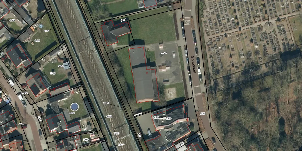 Het perceel waarop Spoorlaan 11 staat heeft een oppervlakte van 2770 m². Dit is een zeer groot perceel. De perceeloppervlakte wordt geregistreerd door het Kadaster. Gedetailleerde informatie over de maten van dit perceel kunt u vinden in het rapport Kadastrale kaart met maatvoering van Spoorlaan 11.