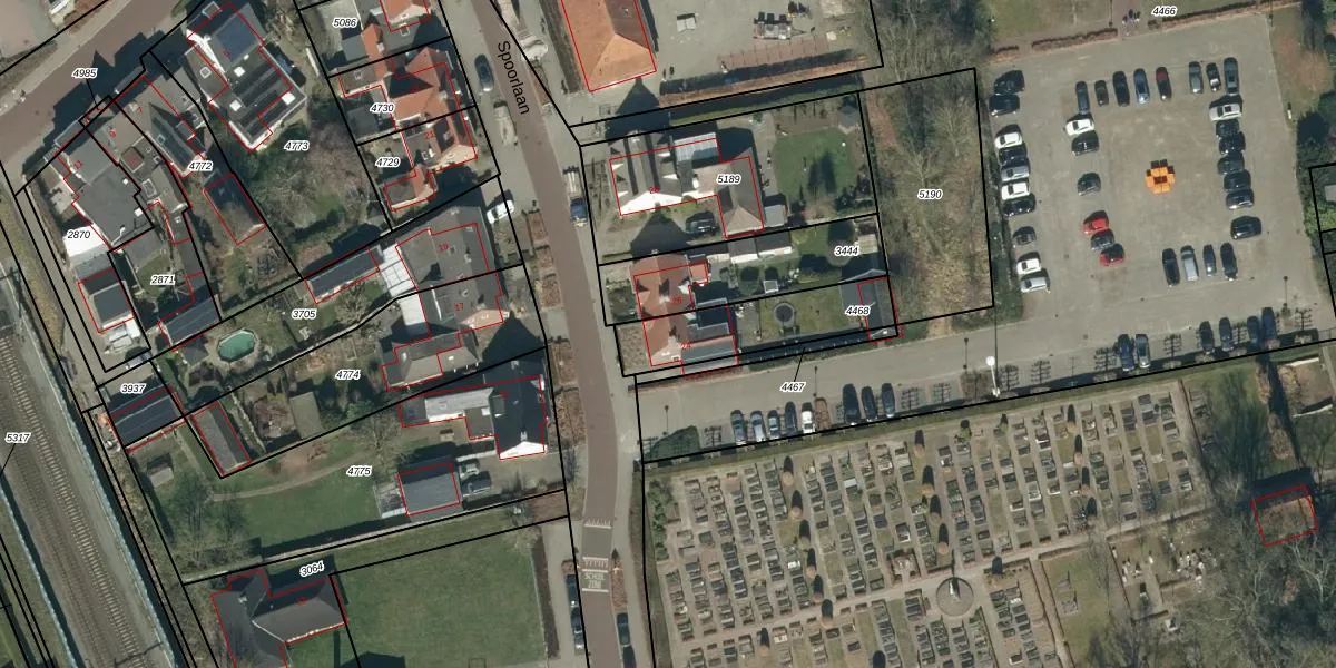 Het perceel waarop Spoorlaan 24 staat heeft een oppervlakte van 323 m². Dit is een groot perceel. De perceeloppervlakte wordt geregistreerd door het Kadaster. Gedetailleerde informatie over de maten van dit perceel kunt u vinden in het rapport Kadastrale kaart met maatvoering van Spoorlaan 24.