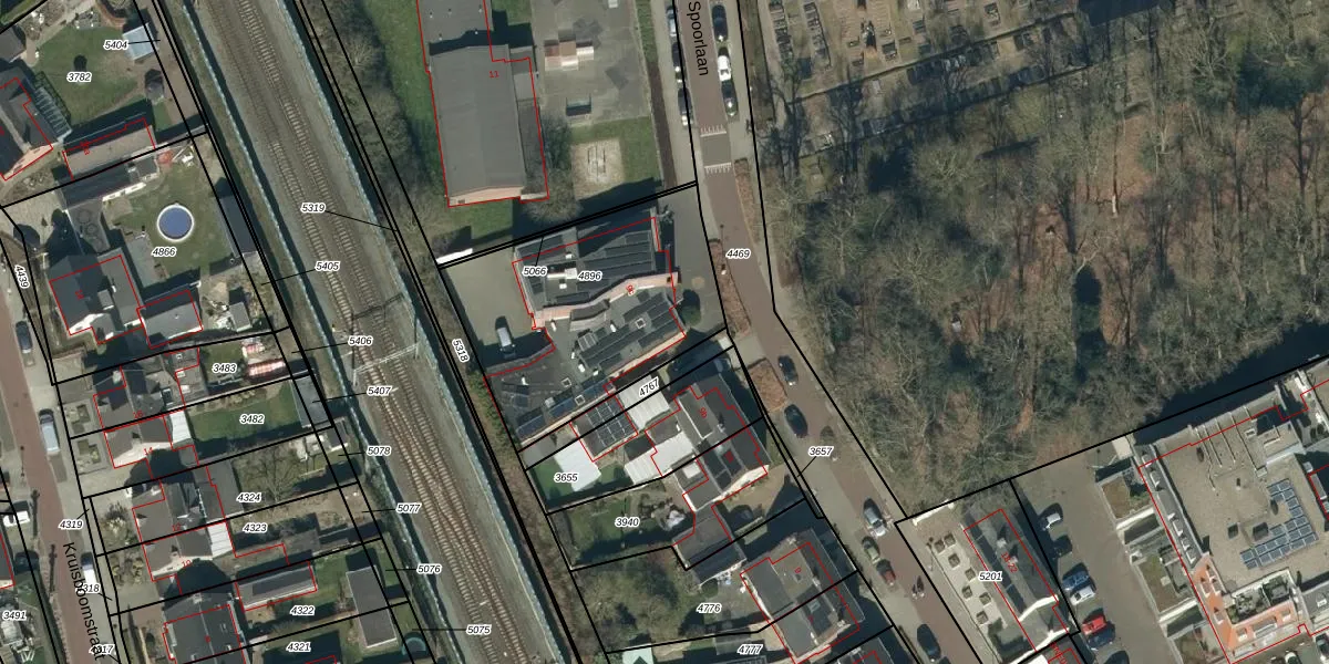 Het perceel waarop Spoorlaan 9-c staat heeft een oppervlakte van 992 m². Dit is een groot perceel. De perceeloppervlakte wordt geregistreerd door het Kadaster. Gedetailleerde informatie over de maten van dit perceel kunt u vinden in het rapport Kadastrale kaart met maatvoering van Spoorlaan 9-c.