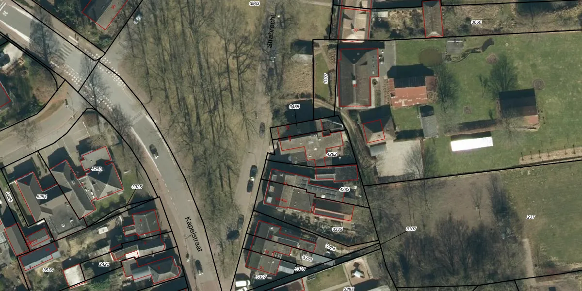 Strabrecht 39-a is gelegen op kadastraal perceel HZE00F4282. Deze kadastrale aanduiding is uniek en wordt gebruikt door het Kadaster om eigendomsrechten en andere zakelijke rechten vast te leggen. Het perceel maakt onderdeel uit van de kadastrale gemeente Heeze.