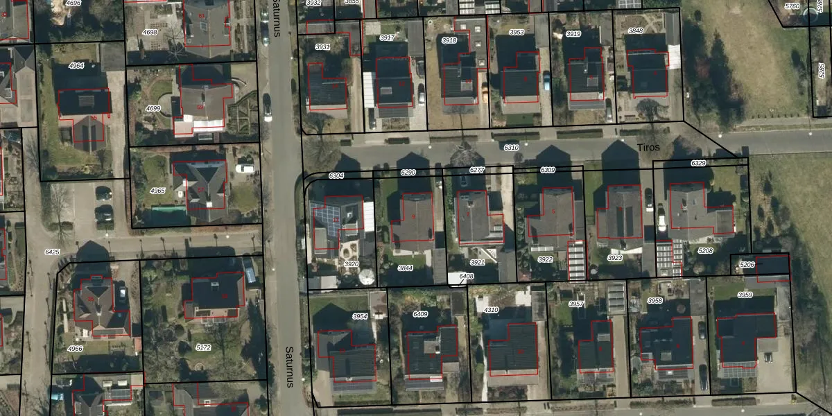 Het perceel waarop Tiros 9 staat heeft een oppervlakte van 444 m². Dit is een groot perceel. De perceeloppervlakte wordt geregistreerd door het Kadaster. Gedetailleerde informatie over de maten van dit perceel kunt u vinden in het rapport Kadastrale kaart met maatvoering van Tiros 9.
