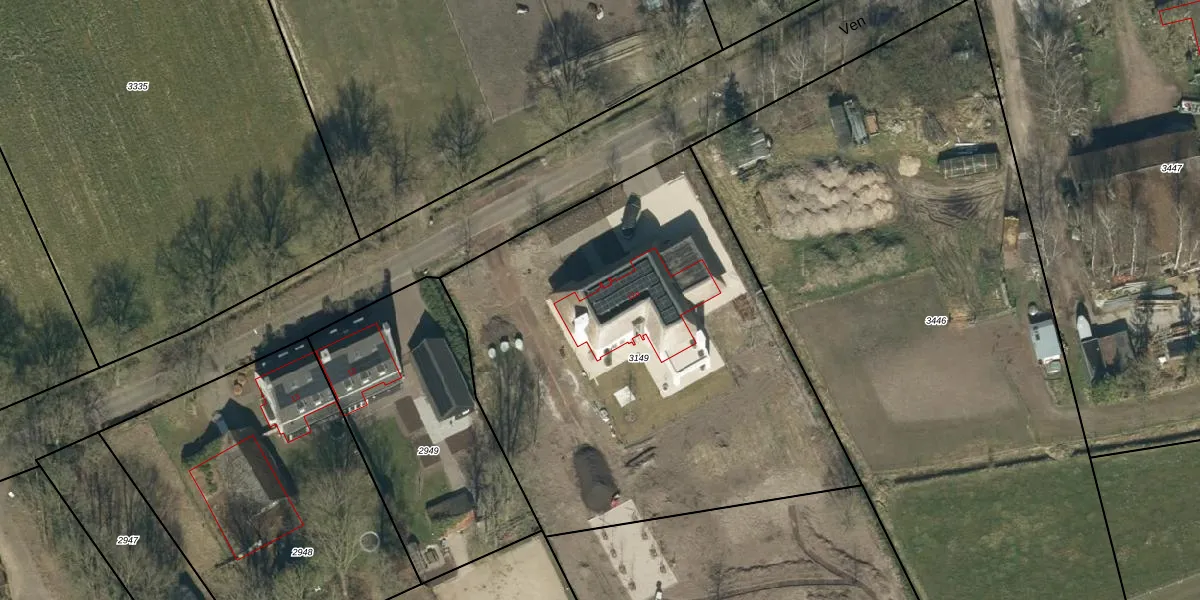 Het perceel waarop Ven 12-a staat heeft een oppervlakte van 2740 m². Dit is een zeer groot perceel. De perceeloppervlakte wordt geregistreerd door het Kadaster. Gedetailleerde informatie over de maten van dit perceel kunt u vinden in het rapport Kadastrale kaart met maatvoering van Ven 12-a.