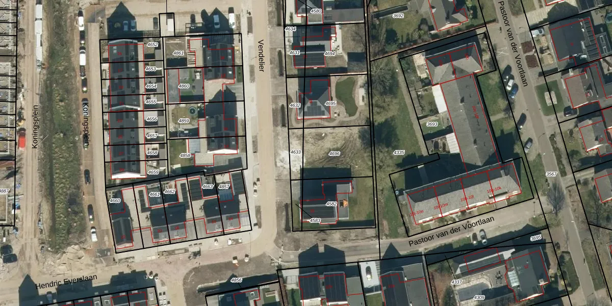 Het perceel waarop Vendelier 31 staat heeft een oppervlakte van 376 m². Dit is een groot perceel. De perceeloppervlakte wordt geregistreerd door het Kadaster. Gedetailleerde informatie over de maten van dit perceel kunt u vinden in het rapport Kadastrale kaart met maatvoering van Vendelier 31.