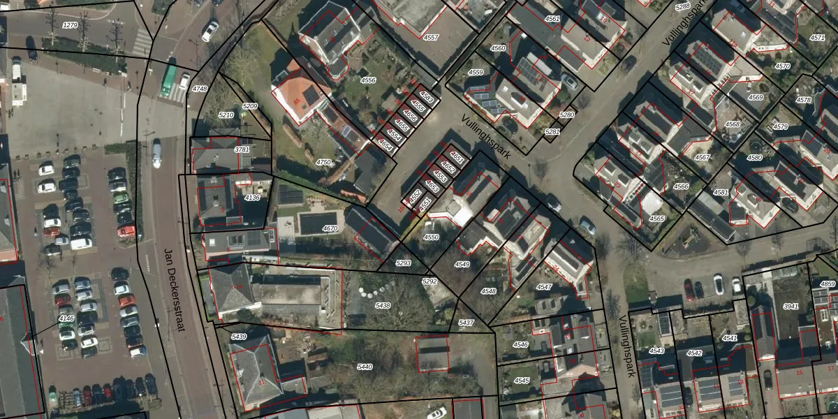 Gebruik de zoekbalk of klik op een perceel voor informatie over de adressen binnen dit perceel.