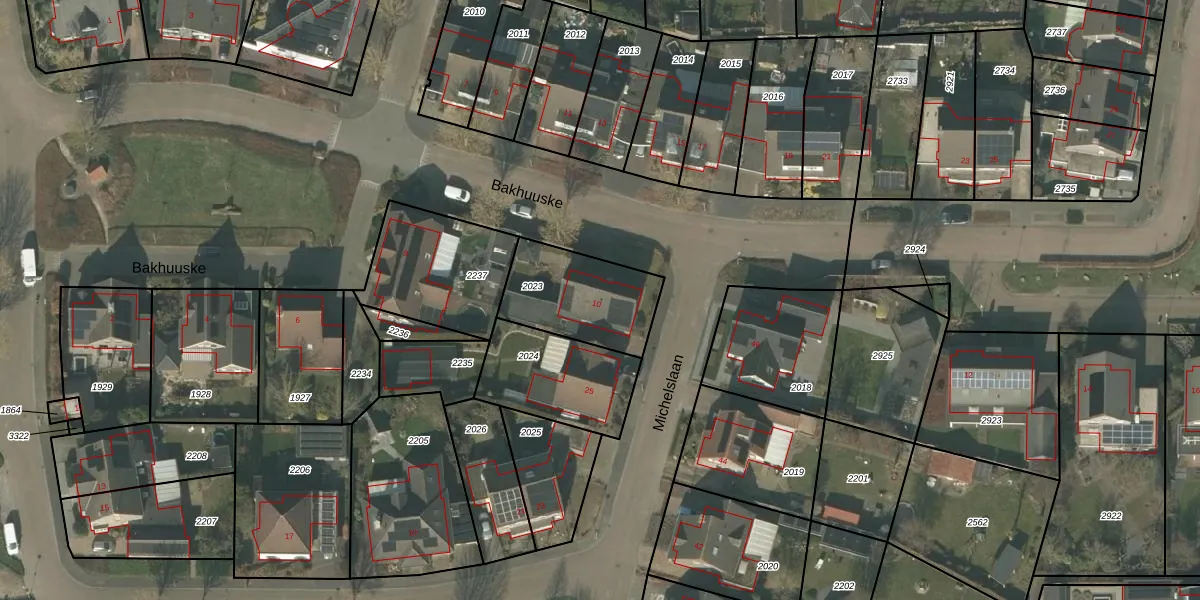 Gebruik de zoekbalk of klik op een perceel voor informatie over de adressen binnen dit perceel.
