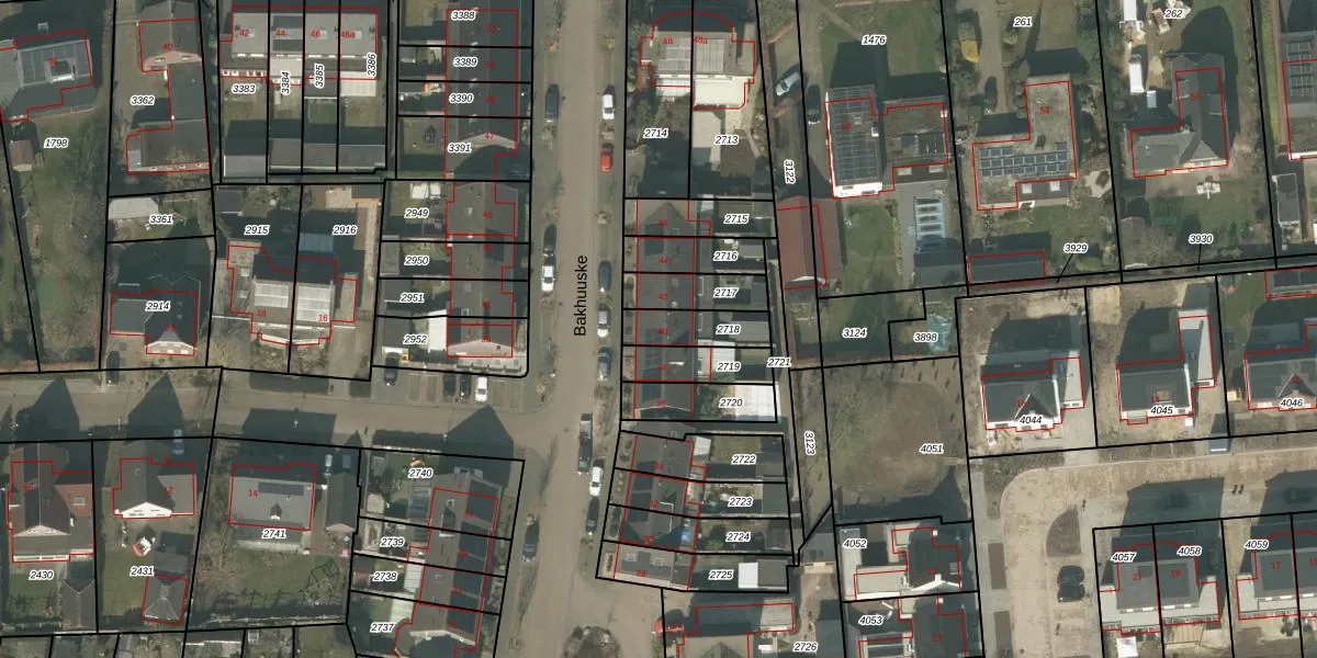 Bakhuuske 40 is gelegen op kadastraal perceel HOR01M2718. Deze kadastrale aanduiding is uniek en wordt gebruikt door het Kadaster om eigendomsrechten en andere zakelijke rechten vast te leggen. Het perceel maakt onderdeel uit van de kadastrale gemeente Horst.