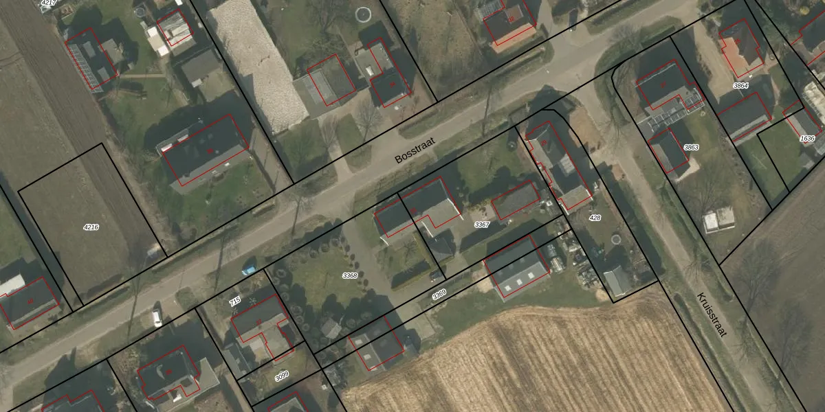 Bosstraat 33 is gelegen op kadastraal perceel HOR01M3367. Deze kadastrale aanduiding is uniek en wordt gebruikt door het Kadaster om eigendomsrechten en andere zakelijke rechten vast te leggen. Het perceel maakt onderdeel uit van de kadastrale gemeente Horst.