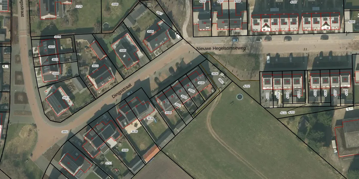 Dingsstraat 32 is gelegen op kadastraal perceel HOR01M3593. Deze kadastrale aanduiding is uniek en wordt gebruikt door het Kadaster om eigendomsrechten en andere zakelijke rechten vast te leggen. Het perceel maakt onderdeel uit van de kadastrale gemeente Horst.