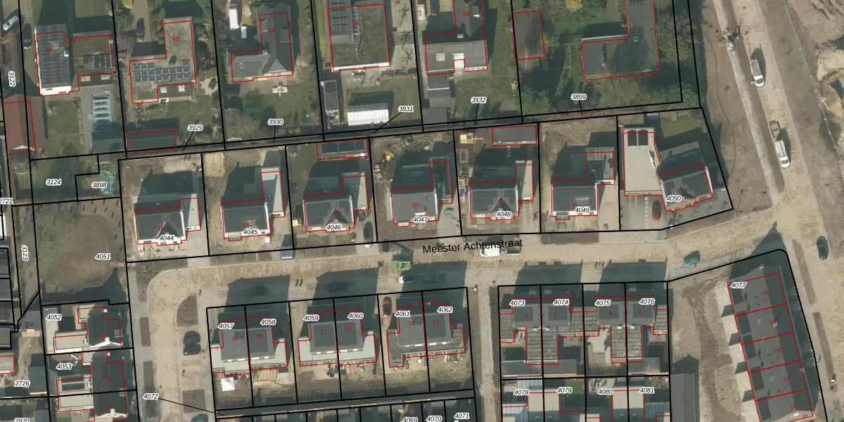 Het perceel waarop Meester Achtenstraat 10 staat heeft een oppervlakte van 502 m². Dit is een groot perceel. De perceeloppervlakte wordt geregistreerd door het Kadaster. Gedetailleerde informatie over de maten van dit perceel kunt u vinden in het rapport Kadastrale kaart met maatvoering van Meester Achtenstraat 10.